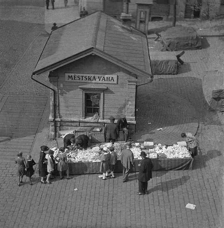 "V domě vedle u trati na jedné z pavlačí jsem zaznamenal svůj první byznys. Jakási paní nakoupila červeno-bílo-modrý krepový papír a když to prasklo a přišli Rusové, tak začala z papíru šít lodičky na hlavu. Brzy je měly všechny děti z okolí, stála 5 nebo 10 korun."