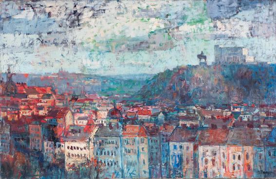 Karel Holan: Žižkovské domy, 1935, olejová malba, 100 x 81 cm