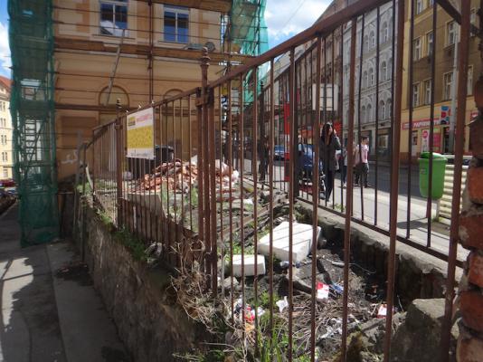 Hovínko a kontejnery na tříděný odpad ve Štítného ulici