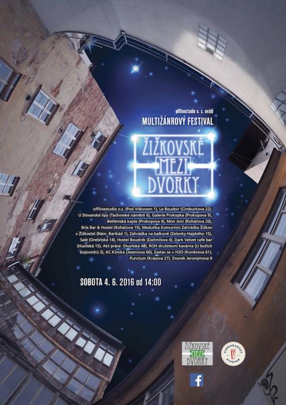 Celý den bude festival provázet mezidvorková hra. Mezidvorky budou končit ve sklepě Žižkostela, tedy v místě, kde začínaly. Komu to nebude stačit, může vyrazit na nedělní chill-out program, který bude probíhat na dvorku Dark Velvet café baru (Husitská 15).